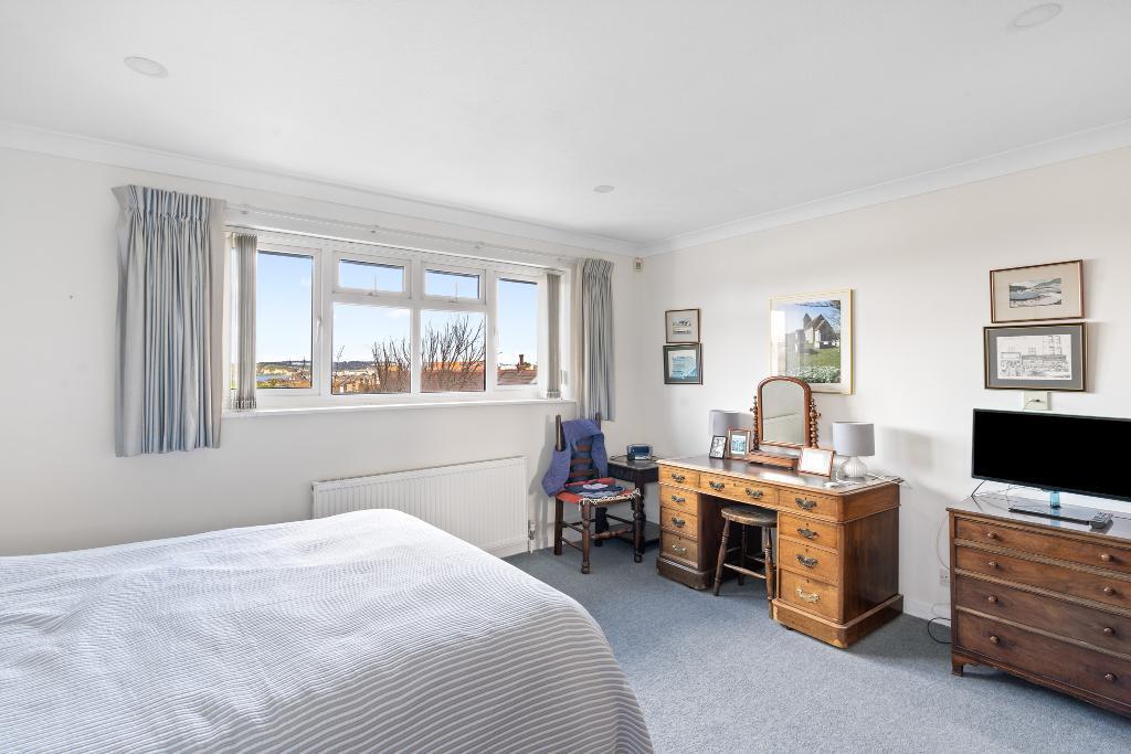 about 14'6 x 12'6 (4.42m x 3.81m) Window to the rear aspect with sea view. Door to the en-suite.