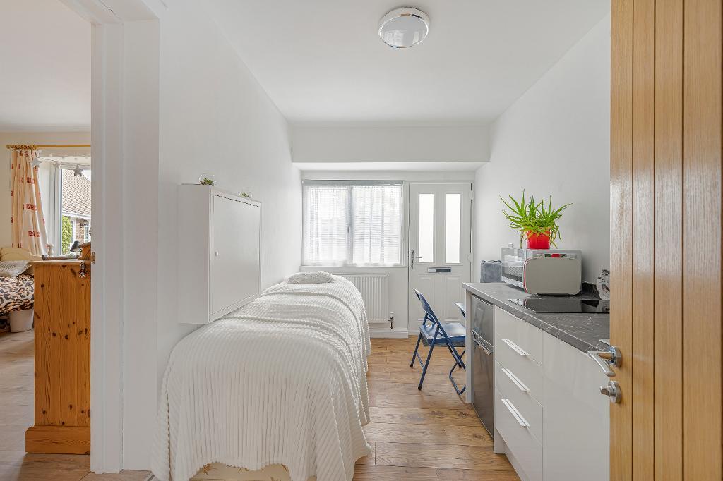A rarely available five bedroom detached chalet style house in a quiet and sought after cul-de-sac location within close walking distance to bus routes. The property has been extended and refurbished to a high standard throughout by the current owners and now offers over 2000 sq ft of accommodation with an annex to one side of the ground floor. There is a good size and secluded garden to the rear of the property which has a south westerly aspect.