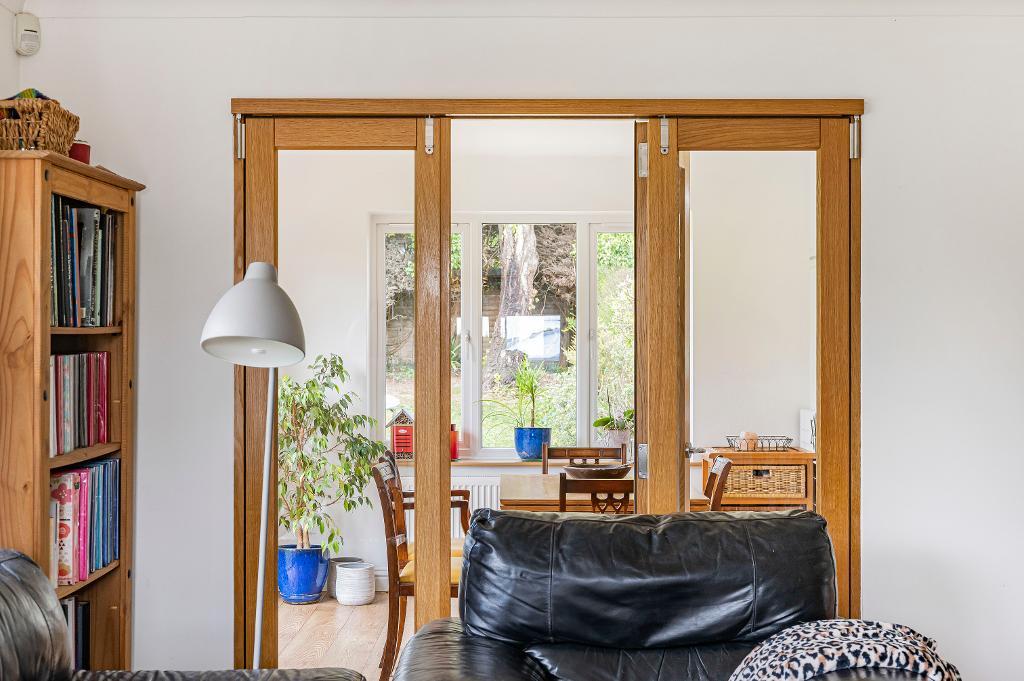about 16'10 x 15'3 (5.13m x 4.65m). Dual aspect room with French doors opening to the back garden. Glazed internal doors open to the dining room.